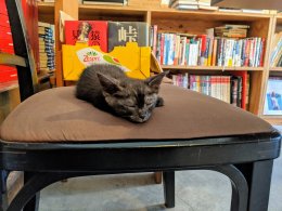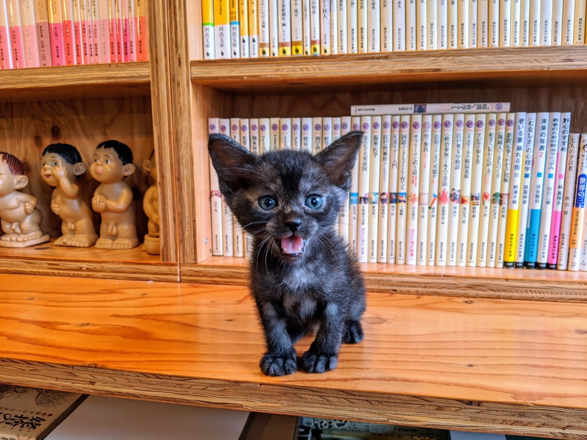 地元の酔っ払い3人衆からの連絡を受け仔猫を保護し、同居を始めて2週間が経過。保護時は生後約4週程度とのことで400グラムだった体重は週に100グラムずつ増え、現在は600グラム。この成長過程がどんなものなのかよく分からないが、とりあえず元気に店内を走り回り、お客さんに弄られ、店主に幾度となく躓かれながら大きくなっているので良しとしておく。