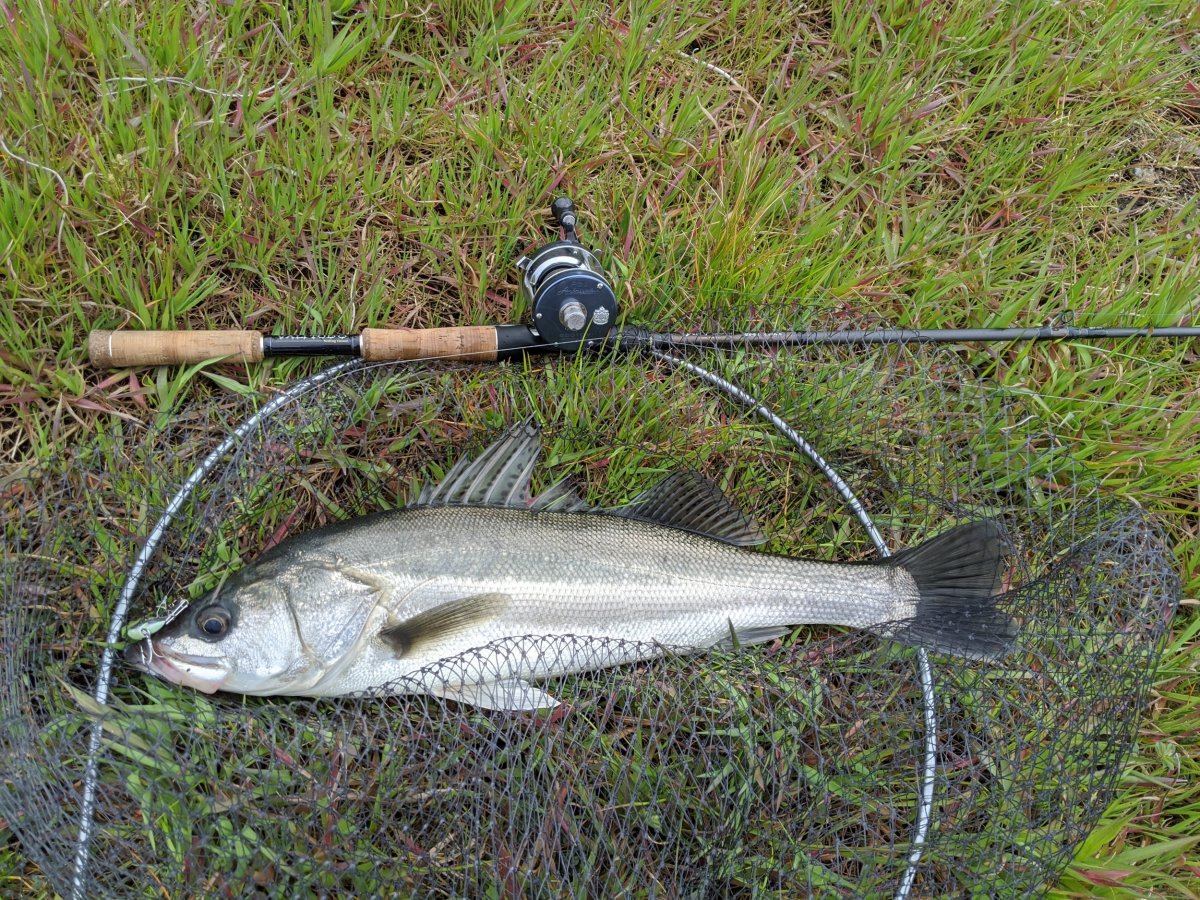 今回の寄り道スポットは帰宅途中にある河口域。たまにいいサイズのシーバス(スズキ)が上がっているらしいが時期も時期。なのであまり期待せずにいたが、しっかり食ってきてくれたので喜びも大きい。ムフフである。一見なんでもない川の流れの中にもちゃんとした変化があり、同じ様に流れている様に見せかけて緩急が存在する。そういう変化を見つけることが出来ると、ちゃんと反応してくれる個体が待っててくれるんですな。数年ぶりのやり取り、楽しかったです。